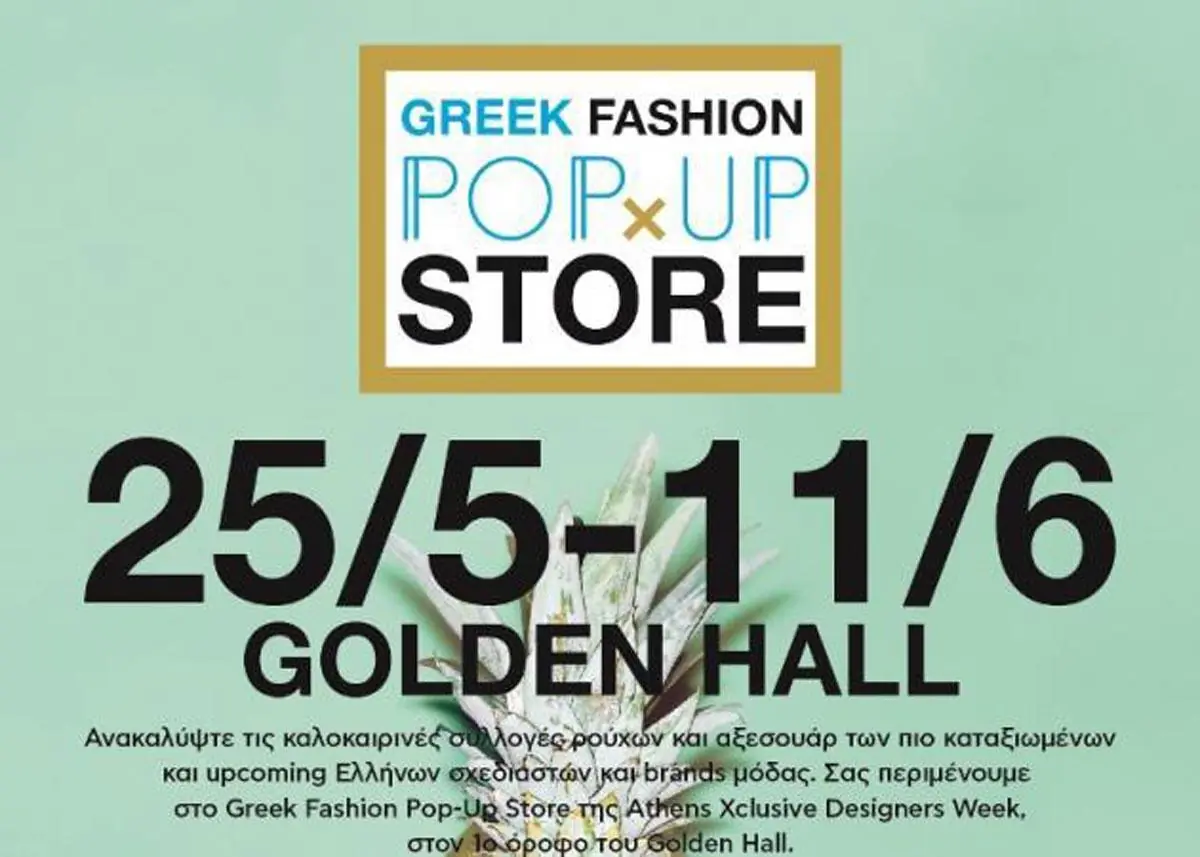 Η Εβδομάδα Μόδας της Αθήνας, Athens Exclusive Designers Week, στο πλαίσιο ενίσχυσης των δραστηριοτήτων της και παραμένοντας πιστή στον πρωταρχικό της στόχο, την προβολή και υποστήριξη των Ελλήνων σχεδιαστών σε πολλαπλά επίπεδα, δημιουργεί για πρώτη φορά το Greek Fashion Pop-Up Store, το οποίο θα φιλοξενήσει αποκλειστικά Έλληνες σχεδιαστές ρούχων, αξεσουάρ και κοσμημάτων και θα λειτουργήσει από τις 25 Μαΐου έως τις 11 Ιουνίου, στο εμπορικό κέντρο Golden Hall.