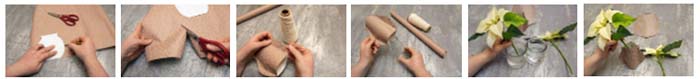 Για να φτιάξετε αυτήν την δημιουργική σύνθεση, θα χρειαστείτε ένα καλούπι σε σχήμα βάζου, μικρά γυάλινα βαζάκια, χαρτί περιτυλίγματος, μολύβι, ψαλίδι, βελόνα και κλωστή ή πιστόλι σιλικόνης, αλεξανδρινά, ένα ποτήρι ζεστό νερό (περίπου 60°C) και ένα με κρύο νερό. Ολοκληρώστε τη σύνθεση με μερικά επιπλέον λουλούδια.